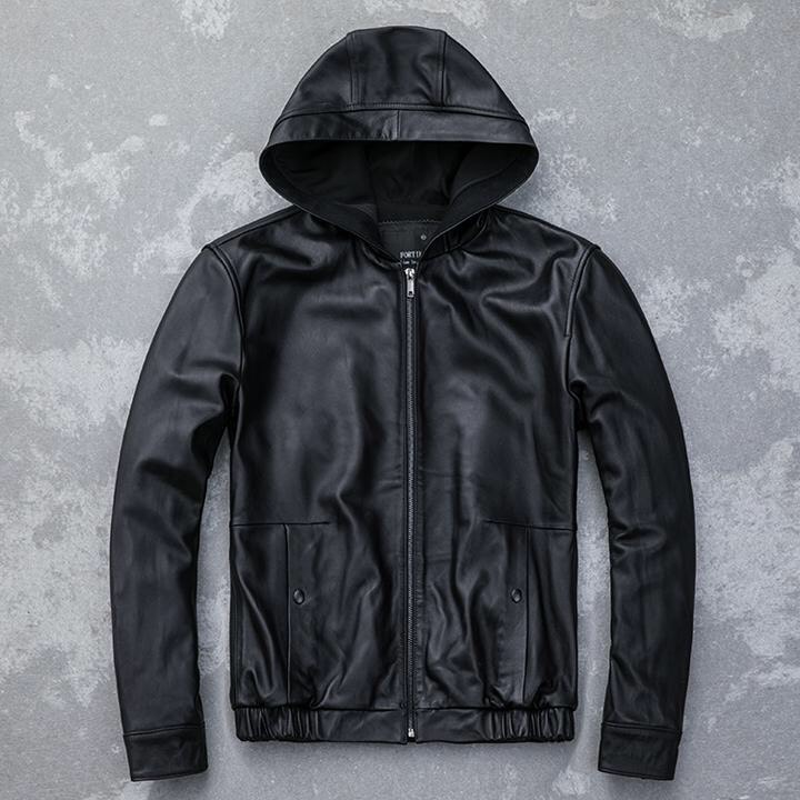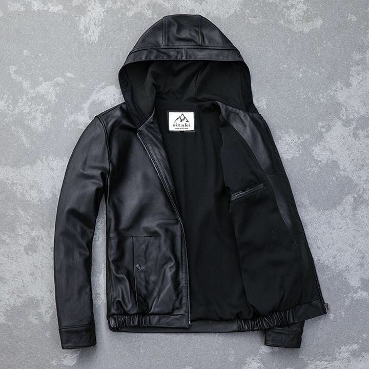 Áo khoác da nam lót nỉ nón trùm