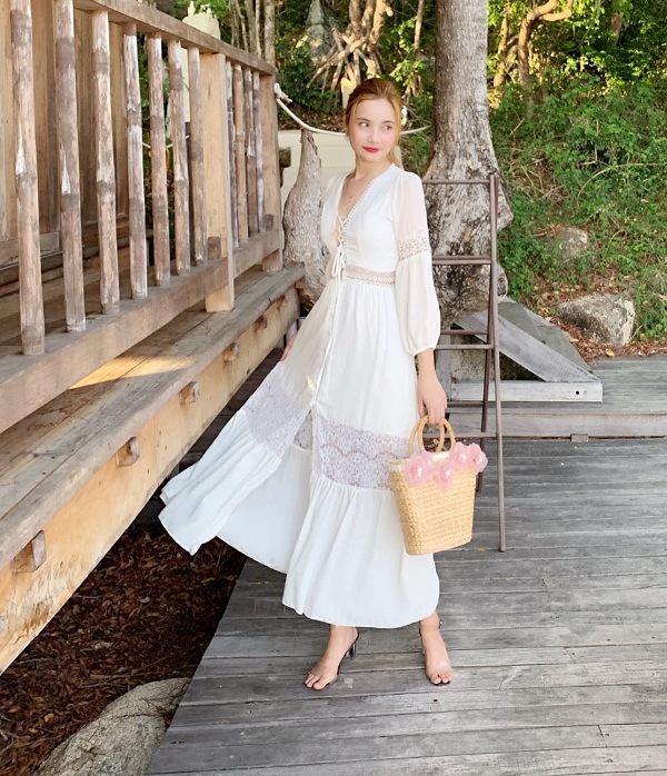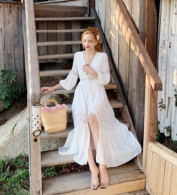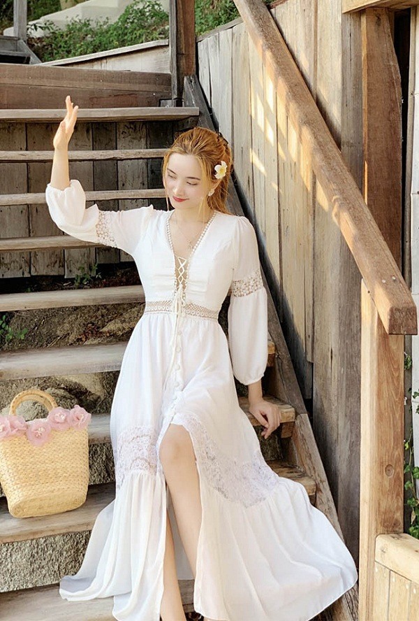 Đầm lụa maxi màu trắng nhanh chóng trở thành mẫu đầm dự tiệc, đi biển được nhiều quý cô chọn lựa hiện nay. Đầm có thiết kế tinh giản, sang trọng, vừa hiện đại vừa có chút cổ điển quý phái, đặc biệt là được làm từ chất liệu lụa mềm cao cấp tôn lên vóc dáng và thần thái của người mặc